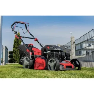 Tondeuse thermique autotractée – 224 cm³ – Moteur puissant à 4 temps, 53 cm de largeur de tonte – Raccord rapide de lavage – Bac de ramassage 65 L – Guidon repliable – Grandes roues larges – Réglage de hauteur centralisé ajustable à 7 positions – 4 en 1 : éjection arrière bac latérale mulching – raccord rapide de lavage. Avec Pare-chocs et poignée de transport.